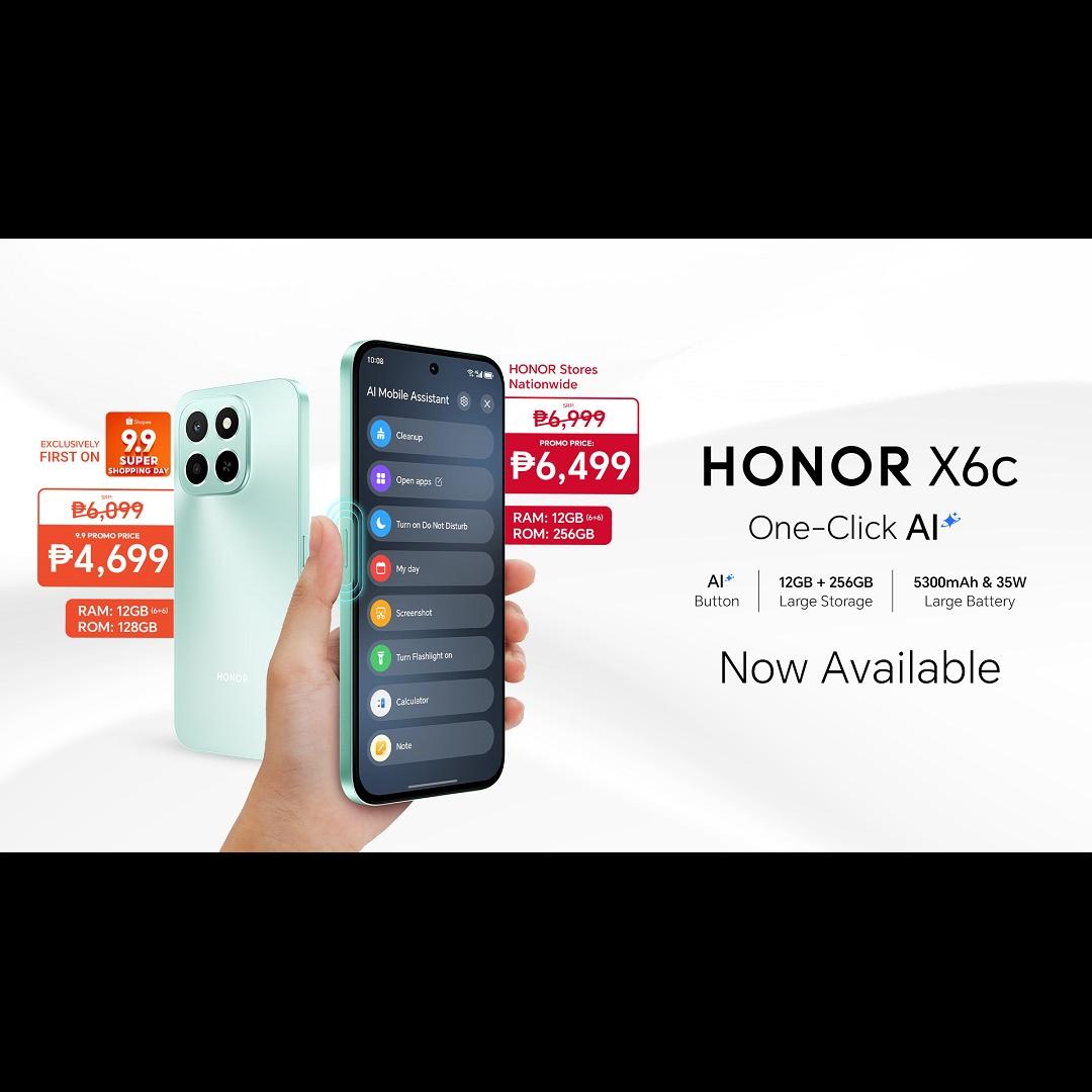 The HONOR X6c is now available at HONOR Experience Stores nationwide and exclusively online on Shopee at an unbeatable 9.9 promo price.