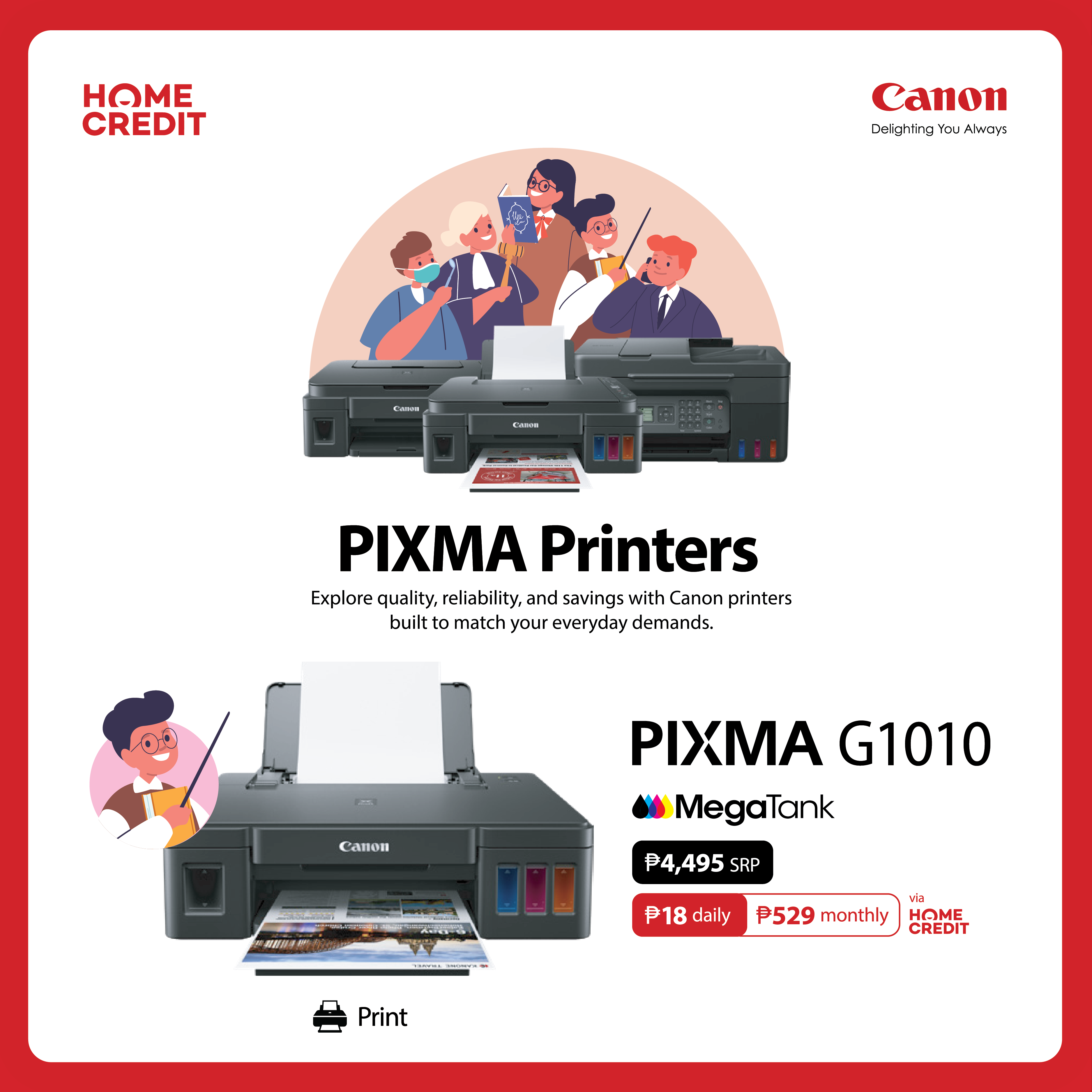 To make creativity more accessible, Canon offers Home Credit installment plans on select printer models and 0% credit card installment options on participating cameras and printers.