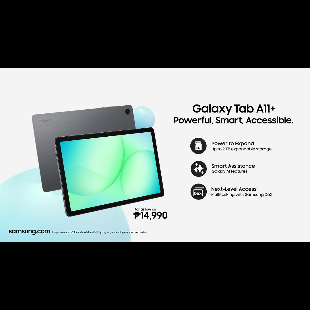 Available in Gray, the Galaxy Tab A11+ starts at ₱14,990 for the Wi-Fi variant and ₱17,990 for the 5G variant. Celebrate 2026 with a FREE 128GB Memory Card and even get a chance to grab a FREE 25W Travel Adaptor during Live selling on Samsung’s flagship stores on Shopee, Lazada, and TikTok. Make it even more versatile with a Book Cover for only ₱850 (₱1,940 OFF), while you can also grab the Galaxy Tab A11 with a Book Cover now at ₱600 (₱1,390 OFF) until March 31, 2026.