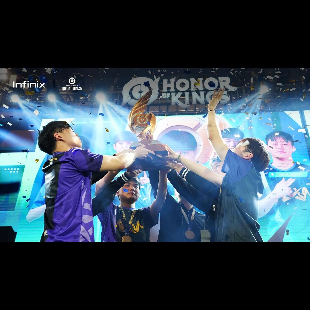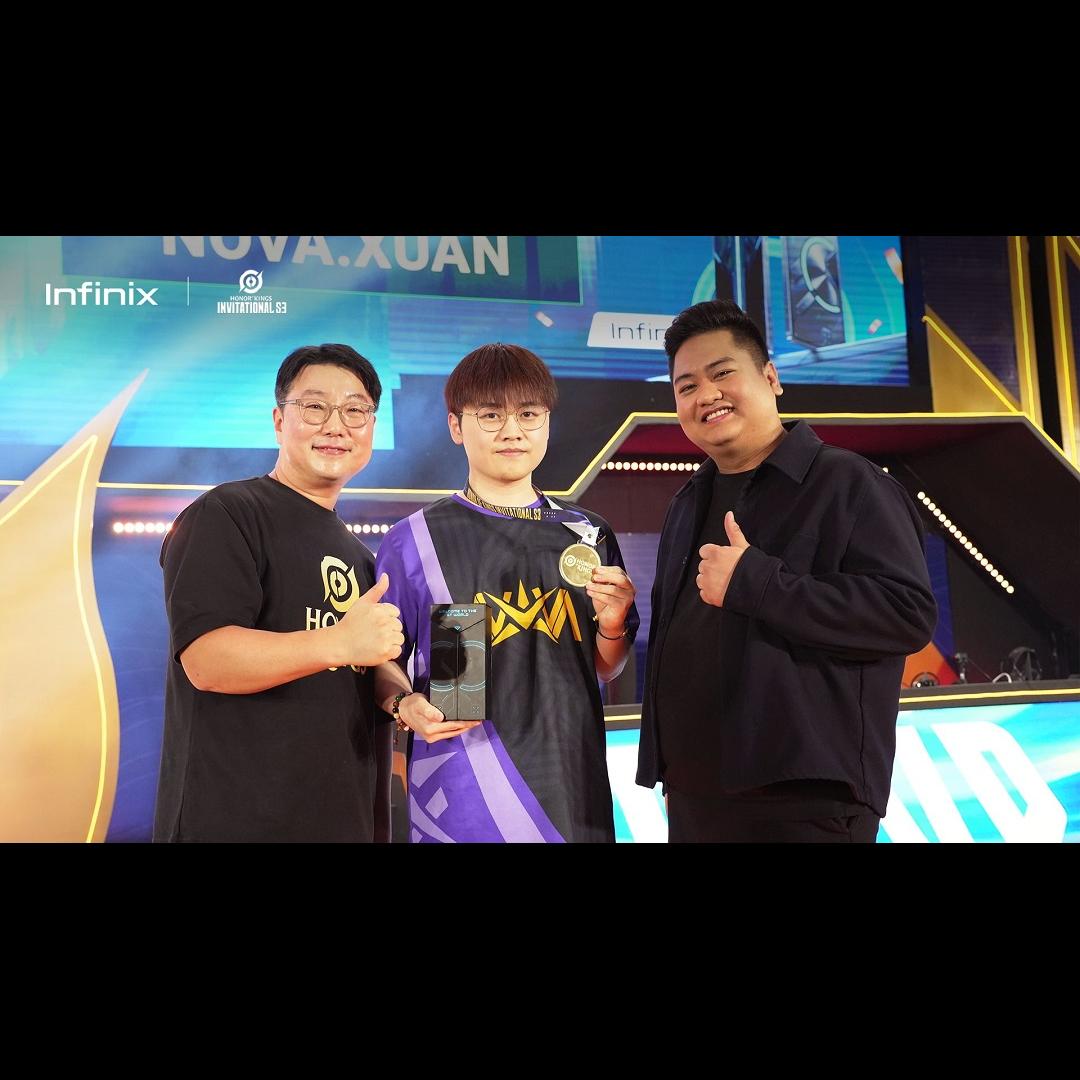 After an intense final series, Nongshim RedForce emerged victorious, claiming the championship title of HOK KIS S3. In a special moment, Infinix’s Esports and Gaming Strategy Manager, Harry Leonardo took the stage to present the Finals MVP award to Malaysia’s Nova Esports player, Xuan, recognizing his outstanding performance and contribution throughout the tournament.