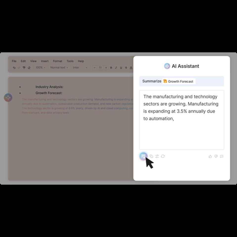 Synology Office AI helps users quickly draft, polish, and proofread text, as well as find spreadsheet formulas using natural language interactions. Users can translate entire documents and slides with a single click to facilitate cross language collaboration. Additionally, the AI Assistant can reference files stored in Synology Drive, providing responses and suggestions that align with the organization's specific context and needs, greatly enhancing accuracy.