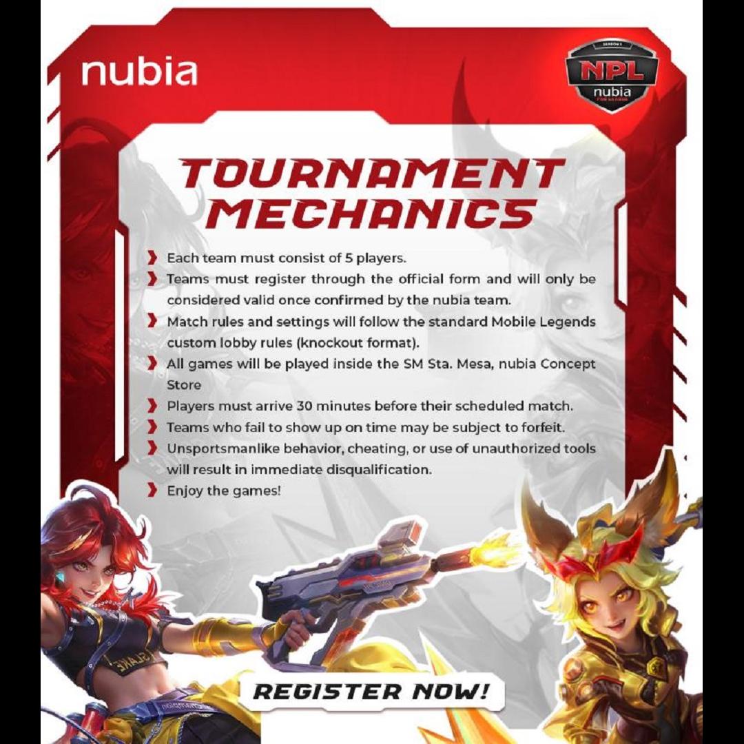To celebrate its growing gaming community, nubia is hosting the first season of the nubia Pro League (NPL) on October 8, 2025 at the nubia Concept Store, SM Sta. Mesa. Teams will battle it out in Mobile Legends: Bang Bang, with a ₱25,000 cash prize pool, 5 units of the Neo 3 GT 5G Limited Edition, and exclusive nubia loot bags up for grabs.