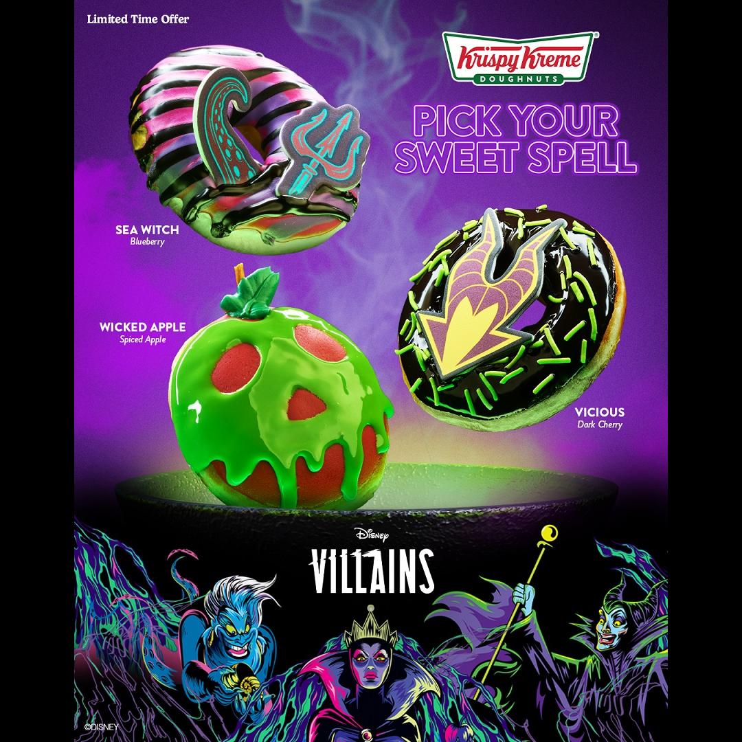 The Disney Villains-themed doughnuts are here to cast an irresistible spell on every bite. Each sweet treat embodies the essence of these fan-favorite villains—charismatic, daring, and just a little dangerous. Fans of both Disney Villains and Krispy Kreme can now enjoy flavors that are as enchanting as they are delicious.