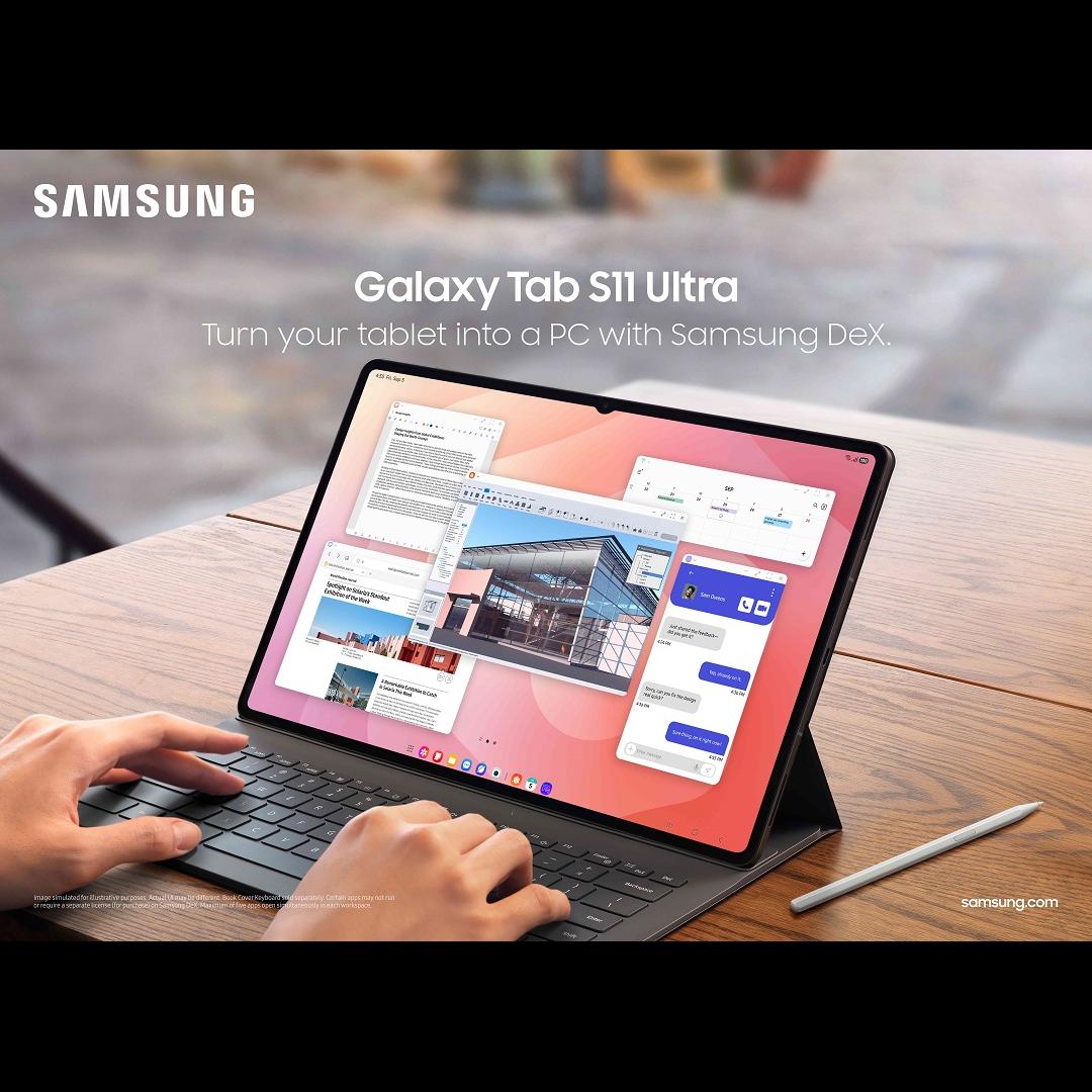 Bundled with a free keyboard and powered by Samsung DeX, your Galaxy tablet transforms into a desktop-like workstation whenever ambition strikes. The Galaxy Tab S11 Series also introduces an upgraded Samsung DeX Extended Mode with dual-screen support, letting you drag and drop apps between displays, reference documents while presenting, and manage parallel workflows with ease. You also get four customizable workspaces tailored to different tasks, so switching roles is as easy and seamless as switching your tabs.