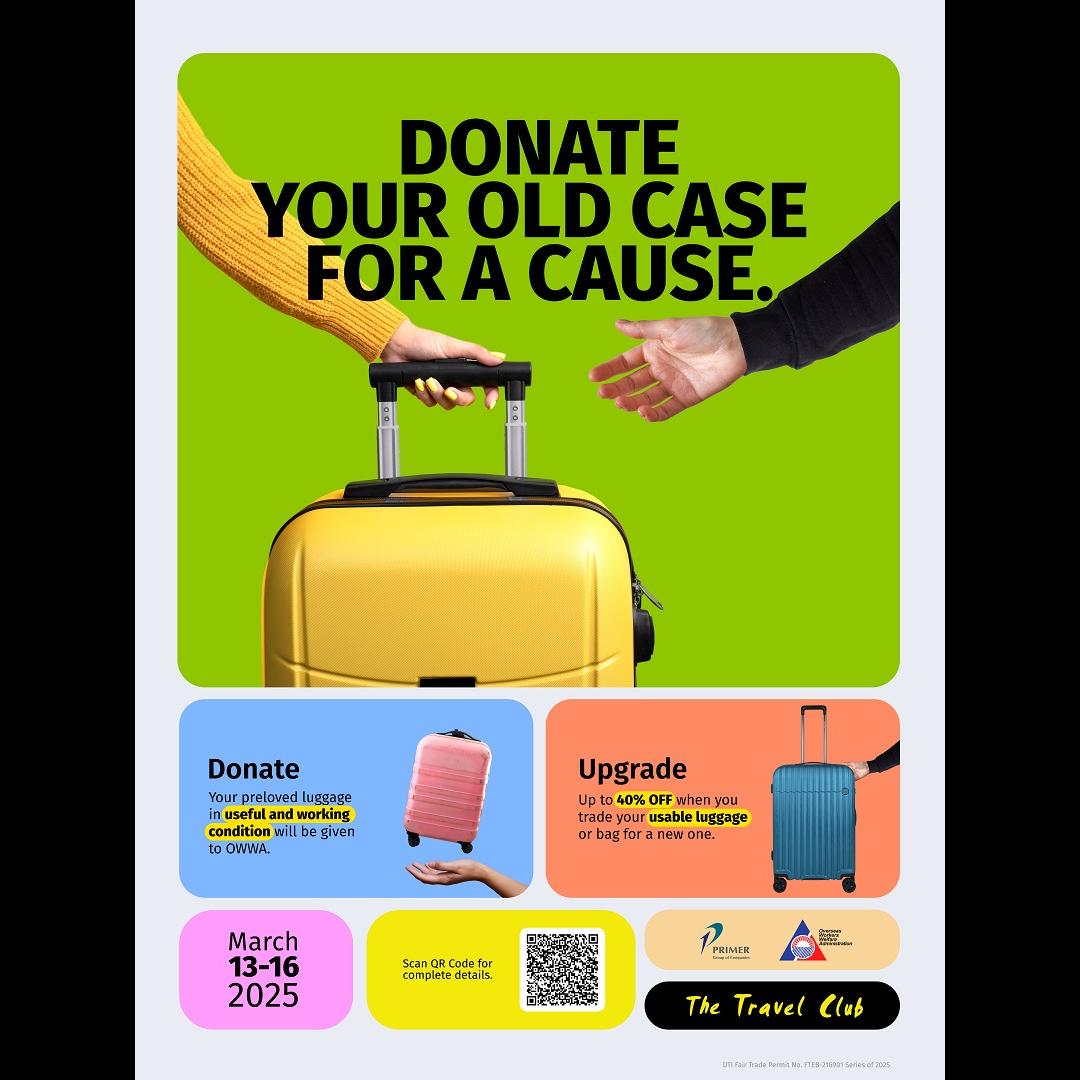 A suitcase carries more than belongings—it holds stories. Now, yours can embark on a new adventure, helping others travel toward new opportunities. The Travel Club is once again rolling out its Donate Your Old Case for a Cause, an initiative, happening from March 13 to 16, 2025, at SM Mall of Asia, Eastwood Mall, and Estancia Mall. This program allows customers to trade in their pre-loved but still usable luggage and bags in exchange for up to 40% off on select travel gear.