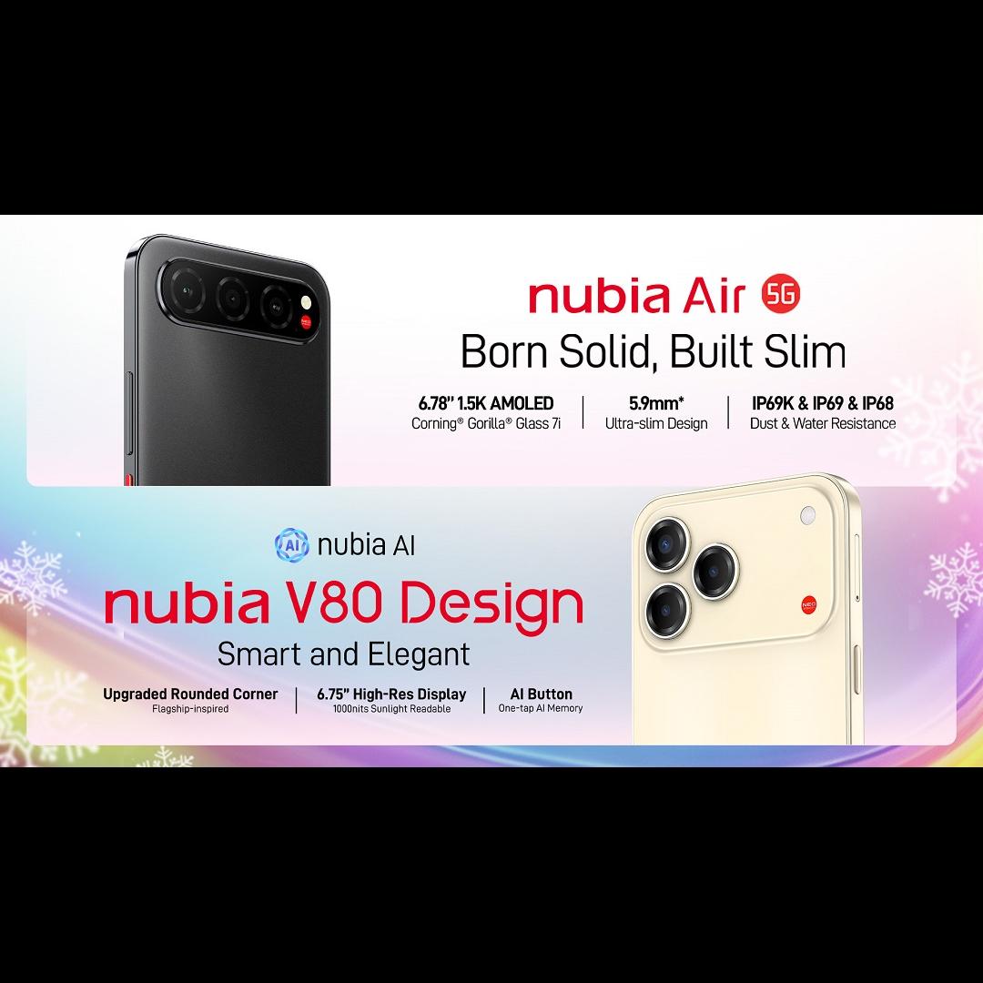 nubia Philippines welcomes the holiday season with the official launch of its newest smartphones - the nubia V80 Design and nubia Air. The two new devices mark the latest chapter in nubia’s commitment to bringing technology that blends performance, personality, and style to the modern Filipino user.