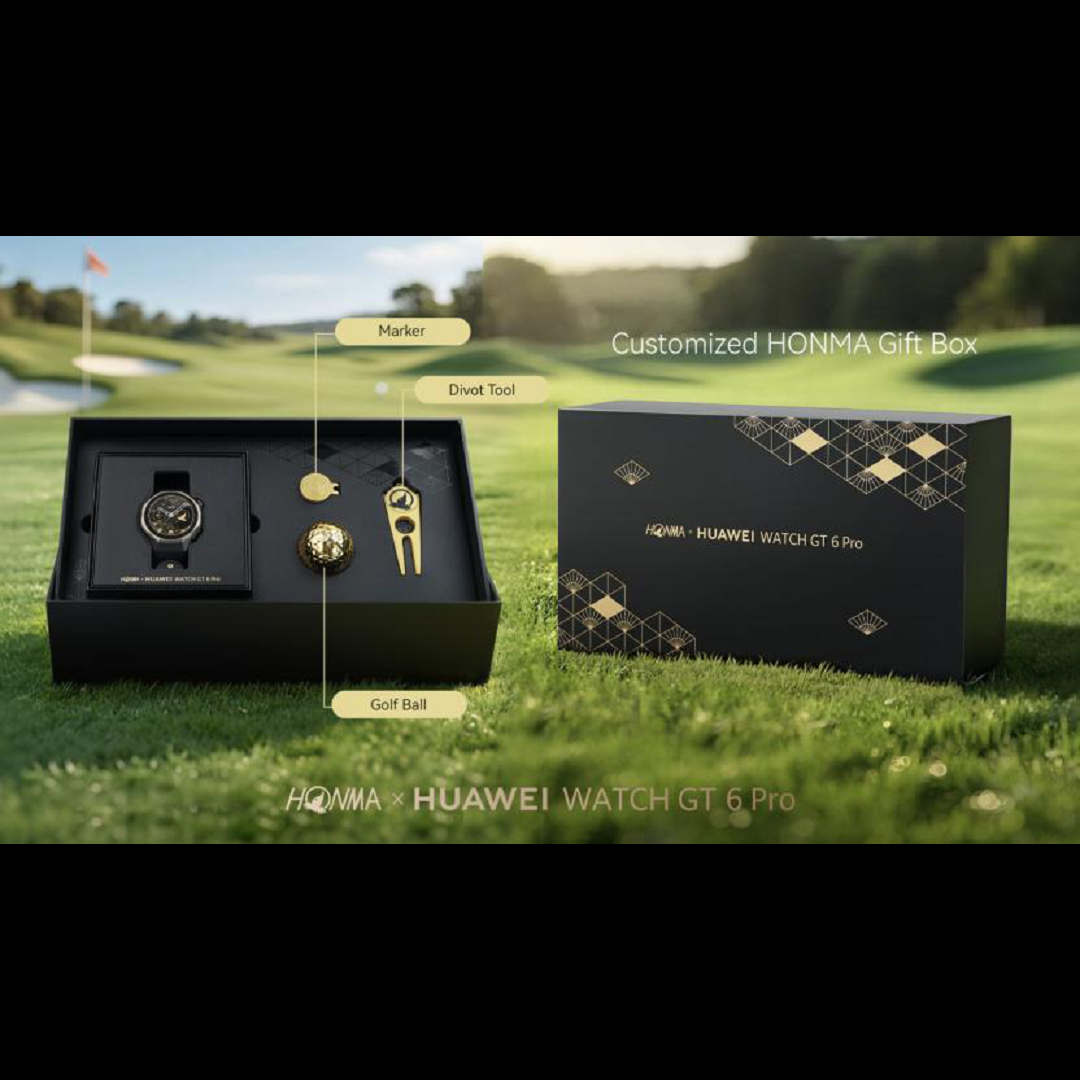 The HONMA Premium Collection Gift Box, an exclusive gift set designed for discerning golfers and collectors alike, completes the experience. The premium box includes the limited-edition HONMA x HUAWEI WATCH GT 6 Pro alongside curated HONMA golf essentials such as a commemorative golf ball, tee, divot tool, and ball marker. These are carefully arranged in a signature black-and-gold case inspired by HONMA’s iconic pine leaf motif.