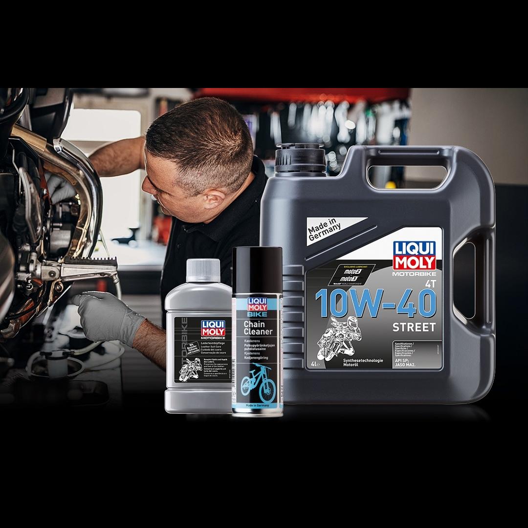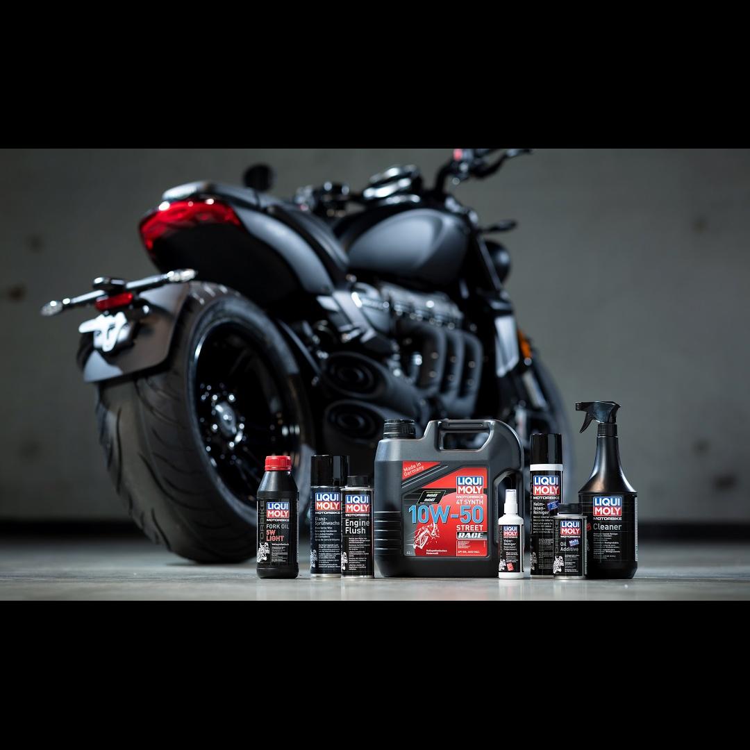 An oil change is the first step in your bike prep. You choose Liqui Moly Motorbike 4T Premium Oils, designed for both air- and liquid-cooled 4-stroke engines. They provide: