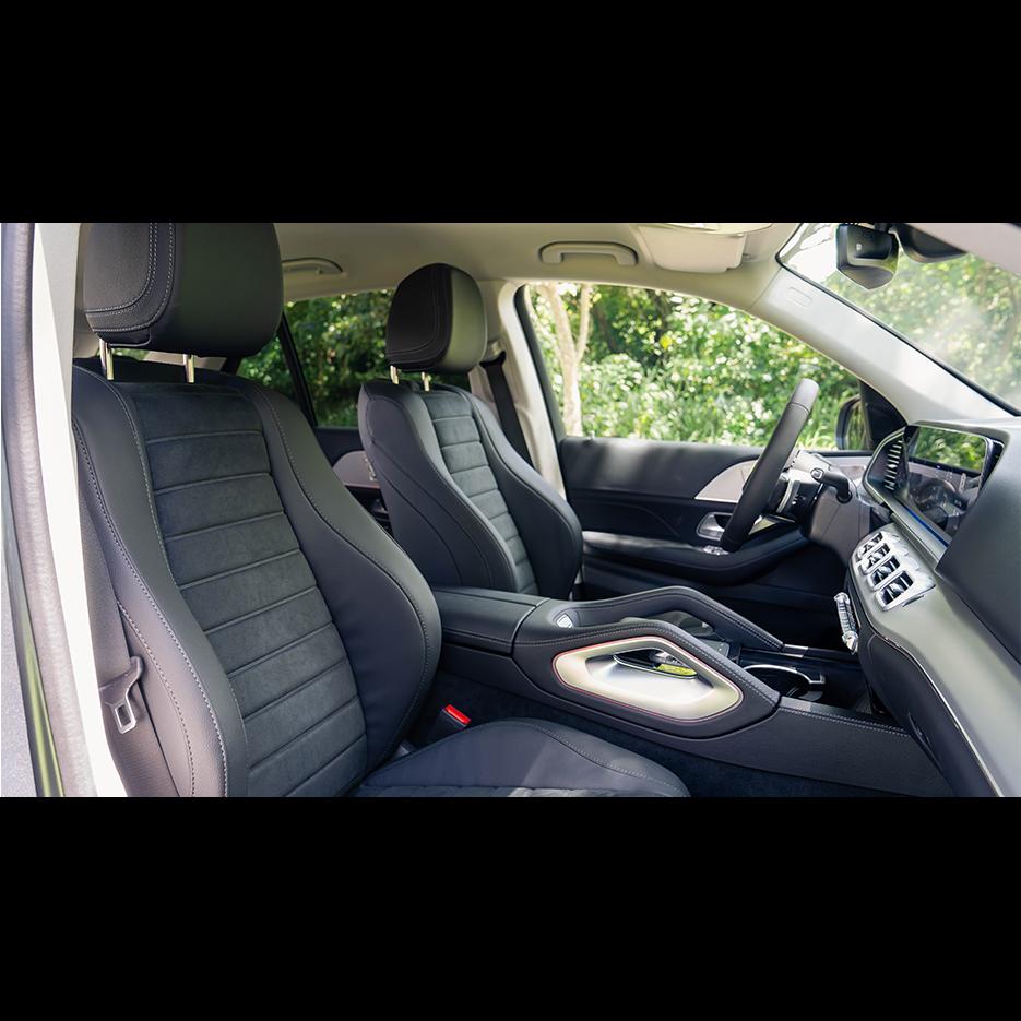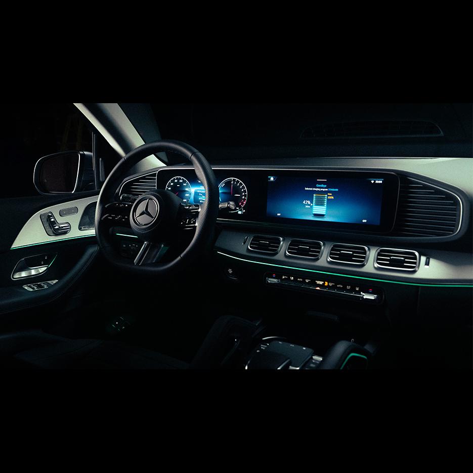 Inside, and the GLE 400 e redefines comfort and exclusivity for those who demand more from their daily journeys. The MBUX multimedia system with Widescreen Cockpit transforms travel into an intuitive, connected experience, complemented by Augmented Reality Navigation for effortless guidance. The cabin is finished with ARTICO man-made leather upholstery and MICROCUT microfiber, creating an atmosphere of sophistication, while the Burmester surround sound system offers concert-level audio for moments of relaxation or celebration.