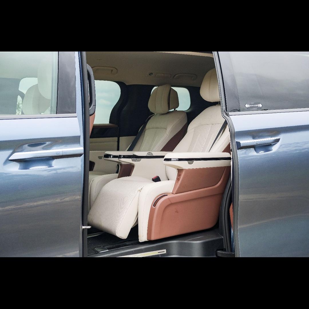 Getting in and out of the eMAX 9 DM-i Premium feels effortless thanks to the hands-free side door opening and tailgate, a small detail that makes a big difference when your hands are full. Add to that a built-in refrigerator to keep drinks perfectly chilled for the road ahead. Moreover, the Tri-Zone Cooling System is installed for both Premium and Advanced variants, which lets everyone set their own ideal temperature, and which shows that the cabin was designed with real families and their journeys in mind.