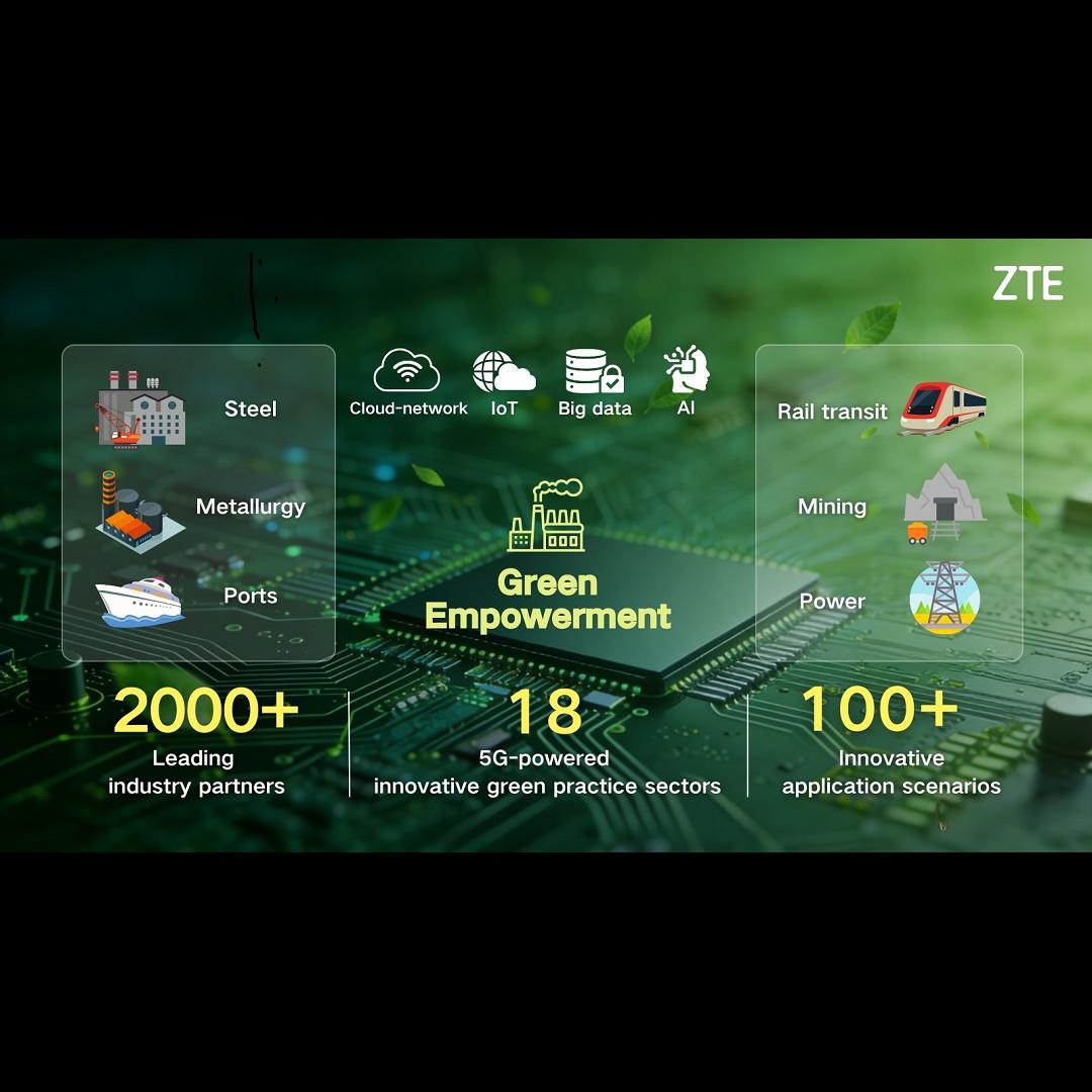 For Green Empowerment, ZTE has integrated cloud and network infrastructure, IoT, big data, AI and other cutting-edge technologies with traditional industries to achieve a win-win outcome of development and emission reduction. The company has partnered with over 2,000 leading industry players to carry out 5G-powered innovative green practices across 18 sectors—including steel, metallurgy, electronics manufacturing, ports, rail transit, mining, and power—pioneering more than 100 innovative application scenarios.