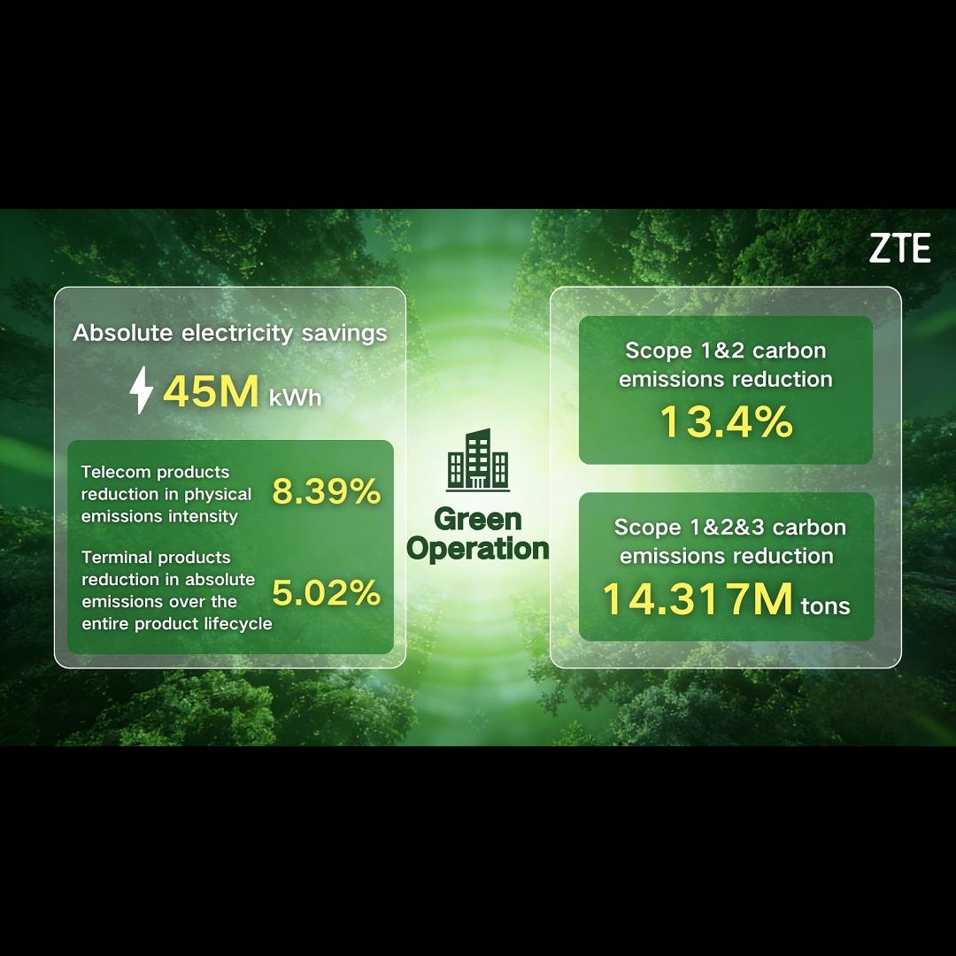 As the member of the UN Global Compact, the Global eSustainability Initiative, and COP29 Green Digital Initiative, ZTE will continue to deepen its role as a "Driver of Digital Economy", collaborating with global partners and customers to advance towards a green and intelligent future, contributing robust efforts to address global climate change and build a sustainable, better world.