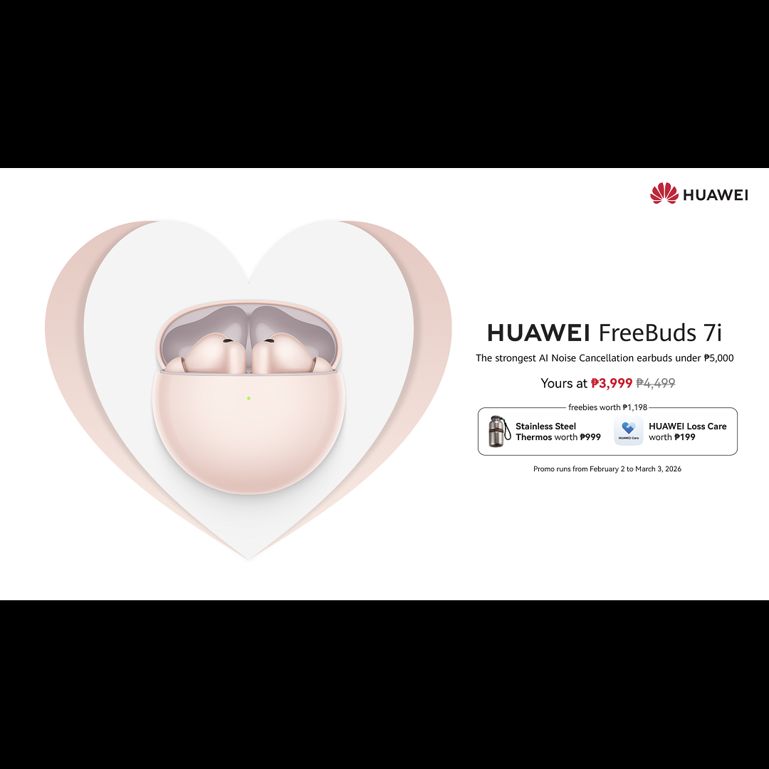 Make every day sound better with a gift that goes beyond a single occasion. The HUAWEI FreeBuds 7i is a reminder that love lives in the everyday—in clearer calls, quieter moments, shared soundtracks, and the simple comfort of being heard. It’s now available with first-sale offers worth up to ₱1,198. Early buyers can receive a free umbrella or coffee cup worth ₱999, plus a one-year, one-time loss compensation valued at ₱199, available until March 3, 2026.