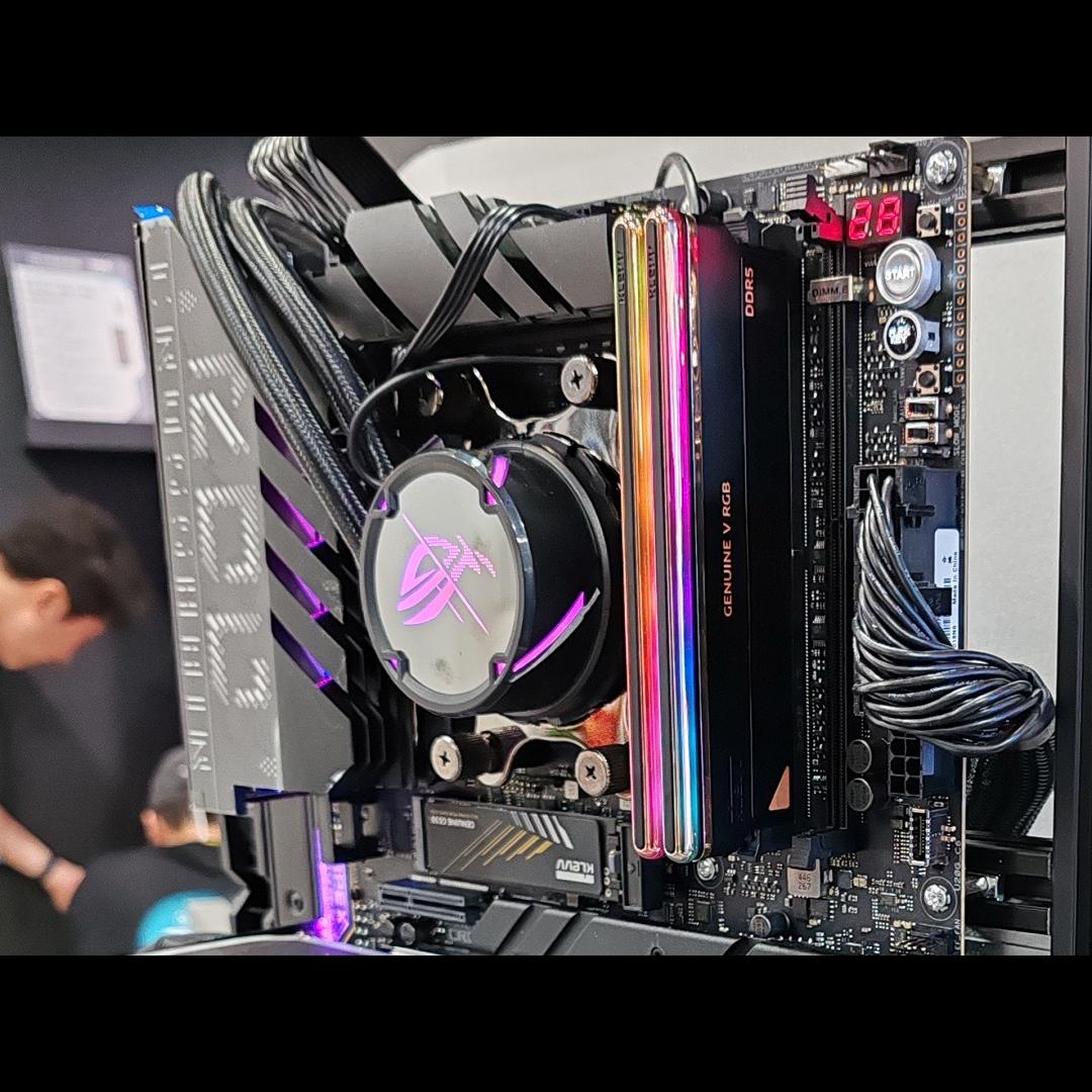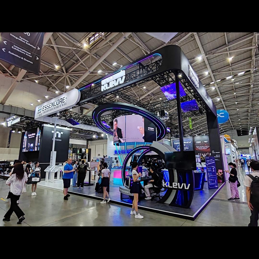 The KLEVV booth featured a live demonstration of its next-generation DDR5 modules running at speeds exceeding 10,000MT/s on various motherboards from leading manufacturers.