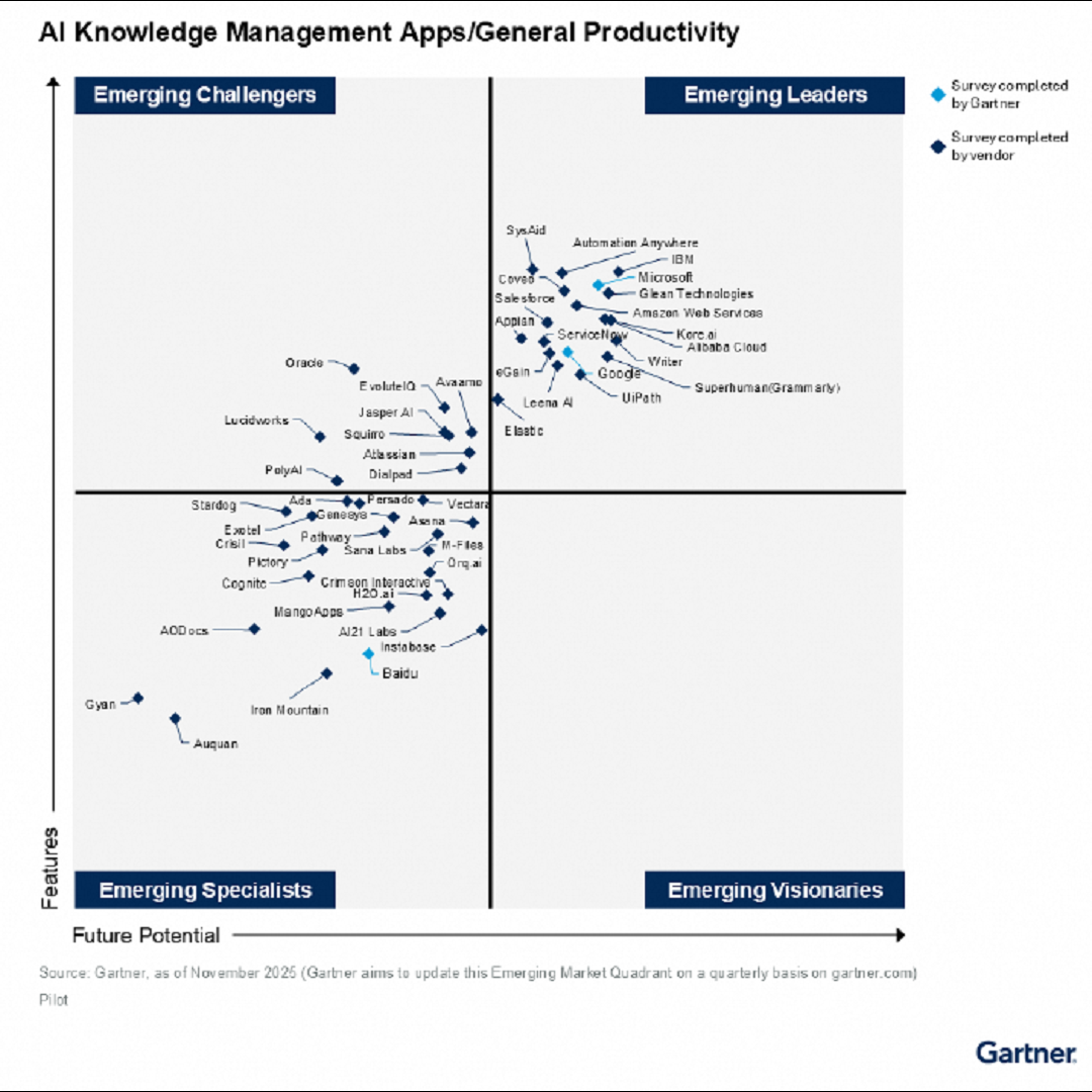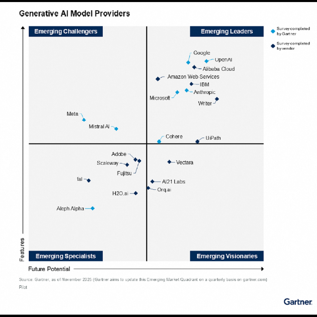 According to Gartner, the Emerging Market Quadrant provides "a visualization of generative AI vendors" in a "dynamic and fast-moving market,” and “Emerging Leaders typically possess visibility within the market as well as both strong features and future potential”.