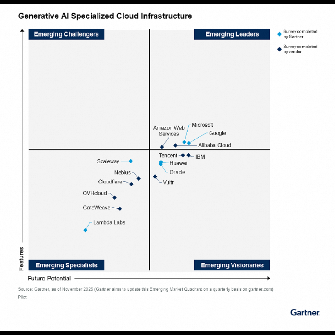 - Generative AI Specialized Cloud Infrastructure: Gartner defines this as "offerings that address the need to enable AI and machine learning (ML) activity," including high-performance compute, storage, and networking for training and inference.